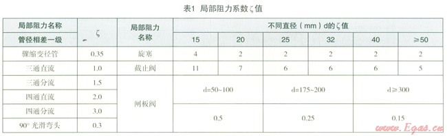 式中:∑z——計(jì)算管段總局部阻力系數(shù)值;