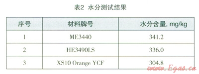 測(cè)試結(jié)果表明:3種材料聚乙烯燃?xì)夤懿木哂形?,并且水分含量相差不大,均大?span lang="EN-US">300mg/kg。