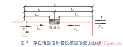 當管段存在錨固段時,對于錨固段左側(cè)、右側(cè)有: