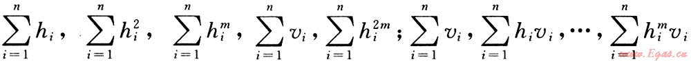 對m+1個未知數ni(i=0,1,2,…,m)的線性方程組,可以證明它的系數行列式不等于零,進而可以唯一確定并解得以上各式中所需的系數ai。在進行計算時,只要算出以下各數量就可以得出正規(guī)方程組。這些數量分別為: