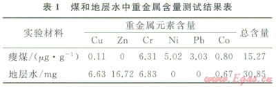 采用電感耦合等離子體質(zhì)譜法(ICP-MS)對(duì)煤和地層水中部分重金屬元素進(jìn)行檢測(cè)(表1)。