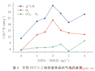 3.2 EDTA二鈉濃度對(duì)產(chǎn)氫的影響