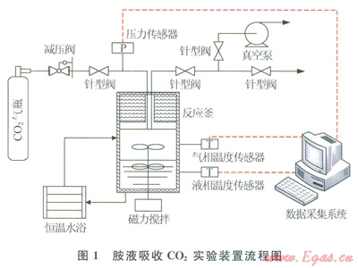 CO2青島天源特種氣體廠,純度99.999%;MDEA,天津天泰精細(xì)化學(xué)品有限公司,工業(yè)級(jí);MEA,天津天泰精細(xì)化學(xué)品有限公司,分析純;DEA,天津市科密歐化學(xué)試劑開發(fā)公司,分析純;CaCl2,國藥集團(tuán)化學(xué)試劑有限公司,分析純;H2SO4,廣東省精細(xì)化學(xué)品工程技術(shù)研究開發(fā)中心,分析純。