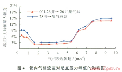 1)當(dāng)管內(nèi)氣相流速介于2~6m/s時,清管中管道起點壓力超壓現(xiàn)象不明顯,清管時宜將管內(nèi)氣相流速控制在此范圍內(nèi)。