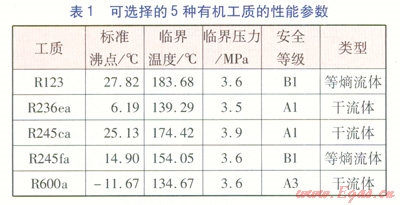 2 有機(jī)工質(zhì)選取