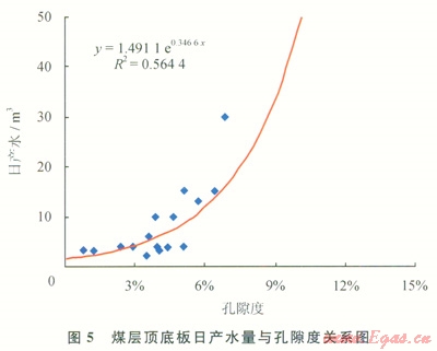 煤層直接頂?shù)装鍨樯皫r時(shí),物性較好,且砂巖厚度越大,則頂?shù)装迳皫r的含水性越強(qiáng),煤層壓裂后頂?shù)装迳皫r的地層水易于產(chǎn)出,排采出水量亦較大。如果砂巖為老頂?shù)?,但直接頂?shù)装宓哪鄮r較薄,壓裂時(shí)容易壓穿直接頂?shù)装宓哪鄮r,致使壓裂縫溝通了老頂?shù)椎纳皫r而增大出水量,且隨著砂巖距煤層越近,越易于壓穿直接頂而溝通砂巖含水層,為此,頂?shù)装迳皫r的厚度、孔隙度及距煤層的距離與煤層排采出水量有較大的關(guān)系。