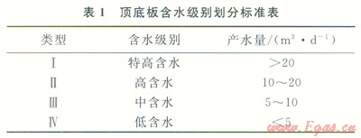諸如上述煤層頂?shù)装搴?jí)別劃分方法,對(duì)研究區(qū)煤層含水級(jí)別進(jìn)行了劃分(表2)。