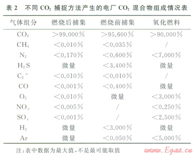 1 不同來(lái)源的CO2混合物雜質(zhì)