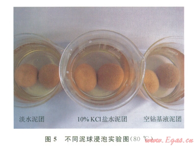 2)泥球浸泡實驗:分別用淡水、濃度100kg/m3的KCl鹽水和霧化基液分別做成泥球在成膜液中(80℃)進行浸泡實驗,對比分析成膜情況。