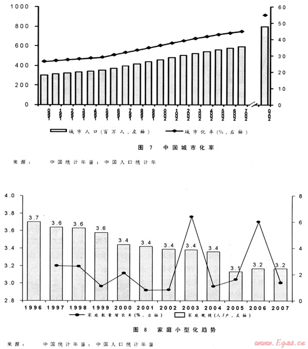 隨著我國城市化進程不斷加快(見圖7)和城市家庭小型化(見圖8)趨勢,城市用氣人口和人均燃?xì)庀M量快速增加(特別是二線城市的城市化和工業(yè)化)。目前城市平均氣化率程度僅為30%,市場遠(yuǎn)未飽和。