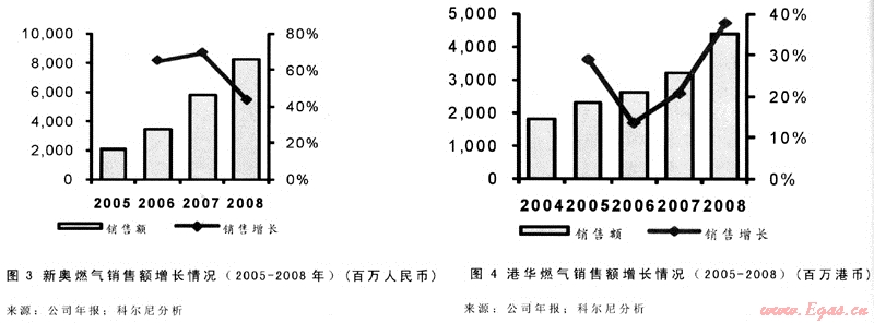 由于金融危機對燃?xì)獾裙檬聵I(yè)帶來的沖擊相對較小,總體來說,城市燃?xì)饨?jīng)營業(yè)務(wù)的基本面并未受影響,2008年城市燃?xì)庑袠I(yè)銷售仍保持了約30%的增長,城市燃?xì)庑袠I(yè)銷售收入由2007年的1137億元上漲到1483億元。主要原因在于:
