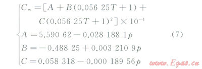 計(jì)算水泥漿等溫壓縮系數(shù)時(shí),認(rèn)為水泥漿中固相顆粒不可壓縮,而水相可以壓縮。首先根據(jù)BrillBeggs提出的經(jīng)典模型,計(jì)算高溫高壓下水的等溫壓縮系數(shù):