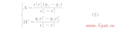 同理,在套管位移分析的基礎(chǔ)上,取ri=rw、ro=rf®∞、qi=qo、qo=0可得: