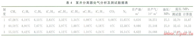 2)井筒壓力測(cè)試時(shí)氣分析數(shù)據(jù)。該數(shù)據(jù)取樣點(diǎn)一般為井口或分離器內(nèi)氣態(tài)氣,基本不含重組分或重組分極少,不能代表該井實(shí)際流體組成。