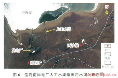 遠砂壩位于河口壩外側(cè),與河口壩相接,是河口壩向湖的延伸,只是由于水體變深,水動力變?nèi)?,沉積物以粉砂和泥質(zhì)粉砂為主,顏色也偏暗。粉砂和泥主要是呈懸浮狀態(tài)由靠慣性向前流動的河水搬運、沉積的。在沉積過程中,沿岸流的作用可使混濁的河水向兩側(cè)擴散。因此遠砂壩的沉積范圍比河口壩的要大。在岱海南岸有一個發(fā)電廠,排出的污水沿人工渠流入湖中。人工渠寬約10m,水深約1m,流速較急,約0.7m/s,與辮狀河流速相近。污水在湖中的擴散形式可以反映河水在湖泊中的擴散形式(圖6)。