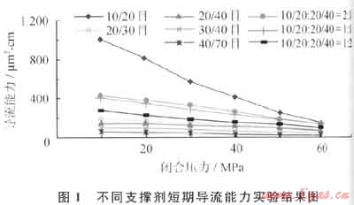 對20/40目壓裂支撐劑再進(jìn)行不同粒徑細(xì)分,同時(shí)進(jìn)行相關(guān)條件下的室內(nèi)物理性能評價(jià),評價(jià)其裂縫導(dǎo)流能力變化是很重要的。將現(xiàn)用20/40目的支撐劑(陶粒、石英砂)按照新的物理分類進(jìn)行不同方式的組合,結(jié)合蘇里格氣田壓裂所獲得的地層原始裂縫閉合應(yīng)力,通過室內(nèi)評價(jià),優(yōu)化支撐裂縫導(dǎo)流能力,可提高氣井單井產(chǎn)量。