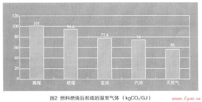 ② 表2中,日本介紹了各種燃料考慮燃料效率后的排放量。美國(guó)資料也認(rèn)為天然氣比其他燃料可少排放45%的C02,如采用高效燃燒技術(shù)甚至可能減少70%的C02。但效率應(yīng)采取不同使用設(shè)備的平均綜合效率,這又是一個(gè)重要的研究課題。