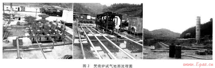 1) 本次試氣首次運(yùn)用國產(chǎn)化焚燒爐,試氣過程中,點(diǎn)火一次成功,最大燃燒量為10.5×104m3/d,焚燒爐累積燃燒時(shí)間為8h,最高燃燒溫度為1191℃,燃燒效率高達(dá)99.99%,S02在近地面空氣中的濃度小于0.1mg/m3,保證了試氣時(shí)井場附近的空氣質(zhì)量達(dá)到國家二類標(biāo)準(zhǔn)的要求。