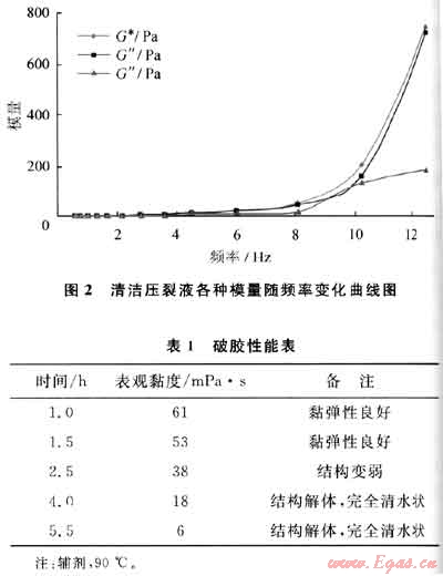 1) 室內(nèi)實(shí)驗(yàn)表明:清潔壓裂液彈性性能好、攜砂性能和破膠性能優(yōu)良,具有低摩阻和低傷害、易返排的特點(diǎn)。