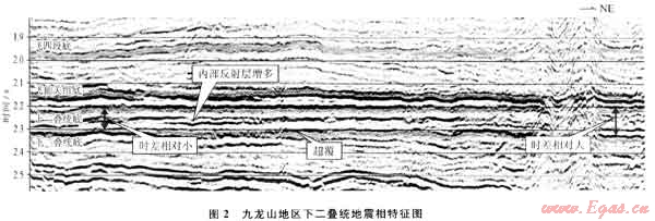川西九龍山地區(qū)下二疊統(tǒng)棲霞組、茅口組為典型的碳酸鹽緩坡沉積環(huán)境,沉積環(huán)境主要受下伏志留系相對(duì)淺水和深水古環(huán)境的控制。探索性地采用地震相與沉積相的綜合解釋技術(shù),預(yù)測(cè)高能灘發(fā)育的有利區(qū)域。通過地震相分析,下二疊統(tǒng)內(nèi)部地震反射時(shí)間厚度異常增加,反射同相軸增多,底界明顯超覆于志留系上,3種不同的地震相特征表明下二疊統(tǒng)為志留系殘余古高地繼承性沉積,古地貌特征決定了本區(qū)高能灘的有利發(fā)育區(qū)。利用3種地震相特征綜合分析,預(yù)測(cè)了高能灘發(fā)育的有利區(qū)域,經(jīng)實(shí)鉆證實(shí),地震相與沉積相分析方法能提高下二疊統(tǒng)高能灘儲(chǔ)層的鉆探成功率。