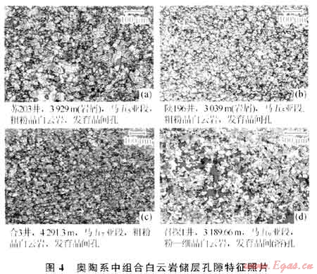 白云巖儲集空間類型主要為白云石晶間孔(局部同時發(fā)育晶間溶孔),次為微裂縫。白云巖晶間孔及晶間溶孔主要形成于碳酸鹽沉積物發(fā)生白云石化作用的同期,與白云巖的成因緊密相關。由于儲層巖石中的白云石晶體通常具有較好的自形度,晶粒支架構成的晶間孔多為多面體或三角形幾何形態(tài),孔壁平直光滑,孔徑大小一般介于10~50μm,面孔率介于1%~5%,少數(shù)超過10%,如古隆起東側的蘇203、陜196等井馬五5亞段粉晶白云巖儲層(圖4)。