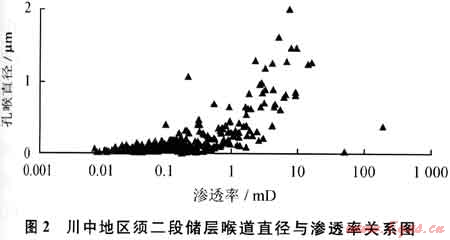 上述分析表明,須二段砂巖儲層在巖石成分和孔隙結構等方面的非均質性較強。