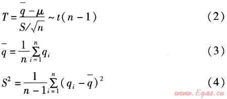從統(tǒng)計(jì)數(shù)據(jù)可以看出,樣本總體服從t分布,則可對樣本值為30~40m3/(人·a)的數(shù)據(jù)作出參數(shù)估計(jì)。樣本服從t分布,表示隨機(jī)變量服從自由度為n-1的t分布[4]: