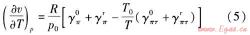 在區(qū)域5中,γ(π,τ)由理想氣體部分和剩余部分的無(wú)量綱Gibbs比自由能組成,γ(π,τ)與比體積的關(guān)系表達(dá)式與區(qū)域2中的形式相同,因此,可以得到區(qū)域5中體膨脹系數(shù)和壓縮系數(shù)的計(jì)算公式。