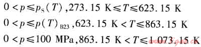 式中p(T)B23——溫度為T(mén)時(shí),由B23方程所確定的區(qū)域2、3的邊界壓力,MPa
