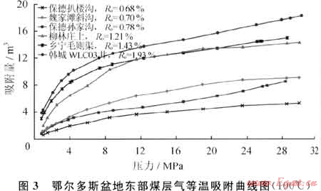 2 深部煤層氣吸附特征及最大吸附量變化規(guī)律