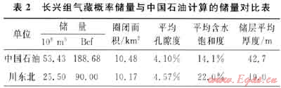 本次計算的概率儲量分布的P50和中國石油天然氣股份有限公司(以下簡稱中國石油)的計算結果差別較大,其主要的原因是本次所采用的孔隙度截止值與中國石油所采用的有較大差別,另外本次計算使用的圈閉面積也小于中國石油采用的圈閉面積。對于P50,采用了3%的孔隙度下限值,而中國石油原來采用的是2%。使用3%的截止值時,各井平均孔隙度會略微偏高,但平均產(chǎn)層厚度卻顯著低于采用2%孔隙度截止值時的厚度(表2)。