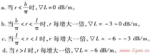 面聲源隨傳播距離增加產(chǎn)生的聲壓級衰減值與面聲源形狀有關。如某鍋爐房的風機房,設風機房長為f,寬為b,隨著傳播距離r的增加,聲壓級衰減梯度▽L與r的關系為:
