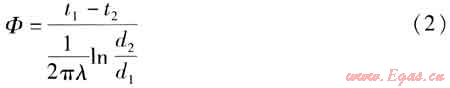 式中Φ——單位長度管道的熱損失,W/m