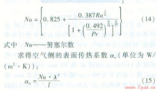 由于翅片管為立式安裝,故此處自然對流換熱計(jì)算選用豎壁準(zhǔn)則關(guān)聯(lián)式: