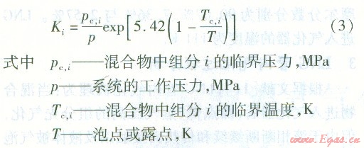 目前對烴類通常采用以下的經(jīng)驗(yàn)關(guān)聯(lián)式來估計(jì)Κi的近似值: