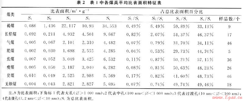 1) 華北地區(qū)褐煤、長焰煤各孔徑結(jié)構(gòu)中比孔容分布較均勻,其他煤類中大孔、過渡孔占較高比例,中孔不發(fā)育;各煤類各孔徑結(jié)構(gòu)中比表面積微孔、過渡孔占絕對多數(shù)。