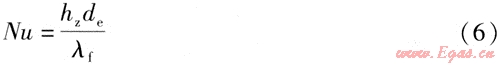 煙氣對流凝結(jié)換熱努塞爾數(shù)Nu為: