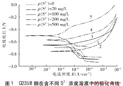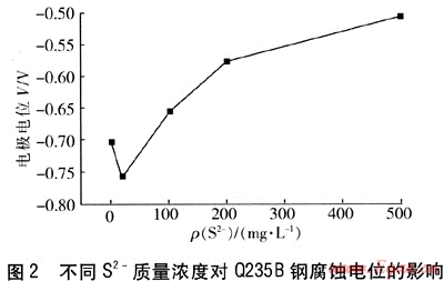 圖2為不同S2-質(zhì)量濃度對Q235B鋼腐蝕電位的影響。