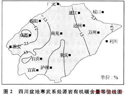 盆地內(nèi)寒武系有機(jī)碳含量一般在0.2%~9.98%之間,159個(gè)樣品的有機(jī)碳含量平均值為0.97%(圖2)。有機(jī)質(zhì)成分以腐泥組為主(占95%以上),無定形,掃描電鏡下為松軟的絮狀體,干酪根碳同位素一般為-27‰~-31‰,氯仿瀝青“A”中飽和烴含量高(40%~60%),芳烴含量低(11%~15%),瀝青質(zhì)含量低(3%~15%),飽芳比高(3~5)。表明原始有機(jī)物主要為盆地相中的低等水生生物,按Tissot等(1984)的分類屬生烴能力極強(qiáng)的腐泥型于酪根。
