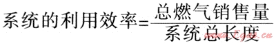 大量的國內(nèi)外資料表明,城市管網(wǎng)管線長度與銷售量有明顯的線性關(guān)系,國際上常以總銷量(106m3)與系統(tǒng)總長度(km)的比值表示——燃?xì)廨斉湎到y(tǒng)的利用效率[1]