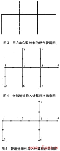 利用AutoCAD的DXF數(shù)據(jù)格式為燃氣管網(wǎng)水力計算程序開發(fā)了管道的自動導入功能,該方法能夠準確、迅速地把管網(wǎng)拓撲結(jié)構(gòu)圖移植到計算程序中,并自動計算管段長度,可以大大減輕輸入工作量,對于大型、特大型管網(wǎng),效果更加明顯。