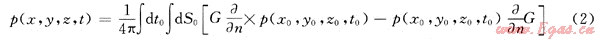 式中:p(x,y,z,t)為閉合曲面S0上某個(gè)觀測點(diǎn)R(x,y,z)處的波場函數(shù)值;p(x0,y0,z0,t0)為閉合曲面S0上某個(gè)觀測點(diǎn)R0(z0,y0,z0)處的波場函數(shù)值;n為閉合曲面的外法線方向;G為格林函數(shù)。