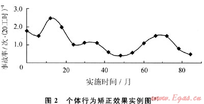 目前,行為科學在現代安全管理科學中日益受到重視,研究成果取得有效的收益。實驗表明,在個體行為矯正方法的實施過程中,由于員工不安全行為的減少,事故率呈周期性下降趨勢(圖2)[5]。根據海因里西(Heinrich)事故三角形可知,即使是輕微事故的減少,也會對預防重大事故的發(fā)生產生重要意義。