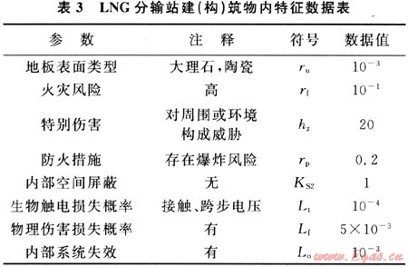 經(jīng)檢測,LNG分輸站內(nèi)綜合樓屋面存在避雷帶有未形成閉合回路、引下線與避雷帶焊接長度未達(dá)到規(guī)范要求等缺陷,因此認(rèn)為外部防雷裝置(LPS)的取值選定為2×10-1,詳見表1。