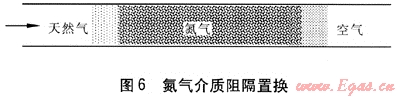 阻隔置換方法是近幾年在我國逐步推廣使用的,簡便易行、安全可靠。本文主要說明使用惰性氣體做中間介質(zhì)的置換方法,氮?dú)饨橘|(zhì)阻隔置換見圖6。