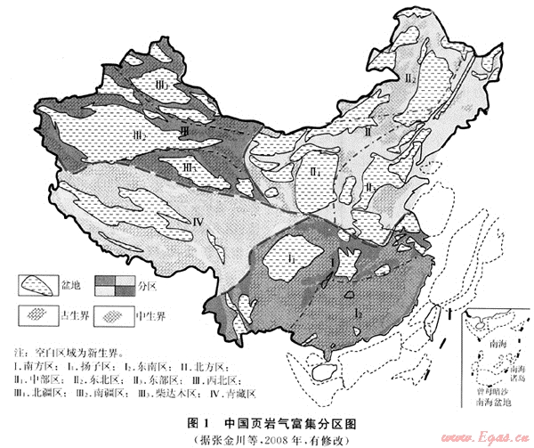 作為源巖排烴殘余的主要產(chǎn)物,頁巖氣的存在具有廣泛意義。頁巖氣是美國大規(guī)模經(jīng)濟(jì)性勘探開發(fā)的三大非常規(guī)天然氣類型(根緣氣、頁巖氣、煤層氣)之一,近年來得到了空前的發(fā)展,其頁巖氣年產(chǎn)量相當(dāng)于目前我國各類天然氣年產(chǎn)量的總和。作為非常規(guī)油氣資源的一種[1],頁巖氣聚集機(jī)理特殊,富集條件多樣,它使得一大批不曾具備常規(guī)油氣成藏條件的泥頁巖重新變得具有直接勘探意義。高含有機(jī)碳泥頁巖在中國廣泛分布,頁巖氣也因此成為值得高度重視且具有廣泛而重要勘探開發(fā)意義的非常規(guī)油氣資源類型。