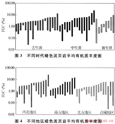 古生界、中生界分布范圍較廣并大致以天山為中心形成南、北“蹺蹺板”式沉積特點(diǎn),即早古生代時以天山以南的塔里木地塊為沉降沉積中心,形成較大面積分布的海相頁巖。晚古生代時則以天山以北的準(zhǔn)噶爾地塊為中心形成頁巖沉積。晚二疊紀(jì)末中生代以來,全區(qū)進(jìn)入陸相沉積環(huán)境,“蹺蹺板”運(yùn)動基本結(jié)束,總體上表現(xiàn)出總有機(jī)碳含量向上逐漸增加的趨勢。