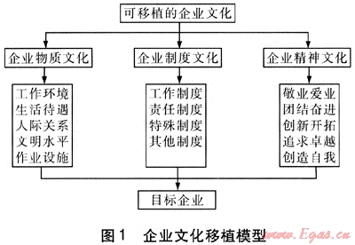 事實證明,買到技術、產(chǎn)品和服務易如反掌,而要重復一個企業(yè)的文化和經(jīng)營方式則極為困難。因此,燃氣企業(yè)在合資、兼并收購其他企業(yè)后,要成功移植企業(yè)的優(yōu)質文化,需要經(jīng)歷一個比較艱難的過程。結合企業(yè)文化的內(nèi)容,企業(yè)文化擴張方式應該是建立在企業(yè)精神的基礎上,以完整的管理制度為依托,以鮮明的企業(yè)形象為載體,符合目標消費群的精神和物質需要[5]。企業(yè)文化移植模型見圖1。