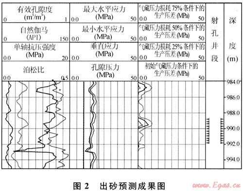 1) 利用測井資料可以定量計算生產(chǎn)壓差,這對于選擇合適的完井措施以避免出砂具有重要意義。