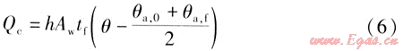 根據(jù)以上假設(shè),隨著風(fēng)機(jī)盤管的工作,室內(nèi)溫度不斷降低,室內(nèi)空氣與墻內(nèi)壁面間的對(duì)流傳熱量Qc的計(jì)算式為: